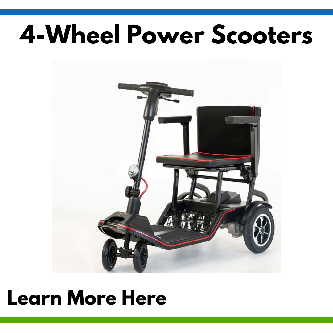 Rollators are four‑wheeled devices that provide balance and stability, and include a seat for resting and usually a basket. These products do require sufficient core and upper‑body control.