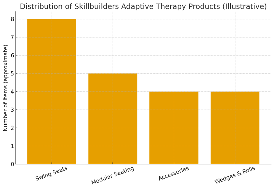 The chart below illustrates (approximately) the distribution of products within the Skillbuilders adaptive therapy line to visualise category breadth.